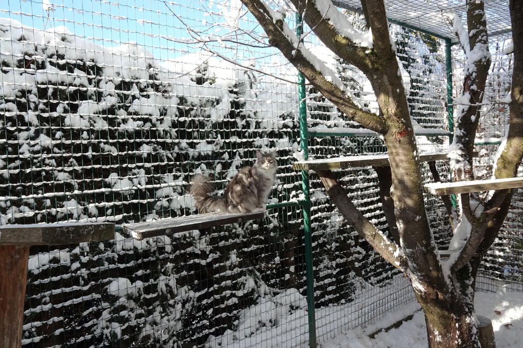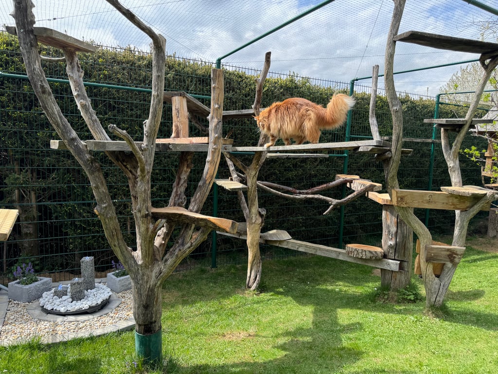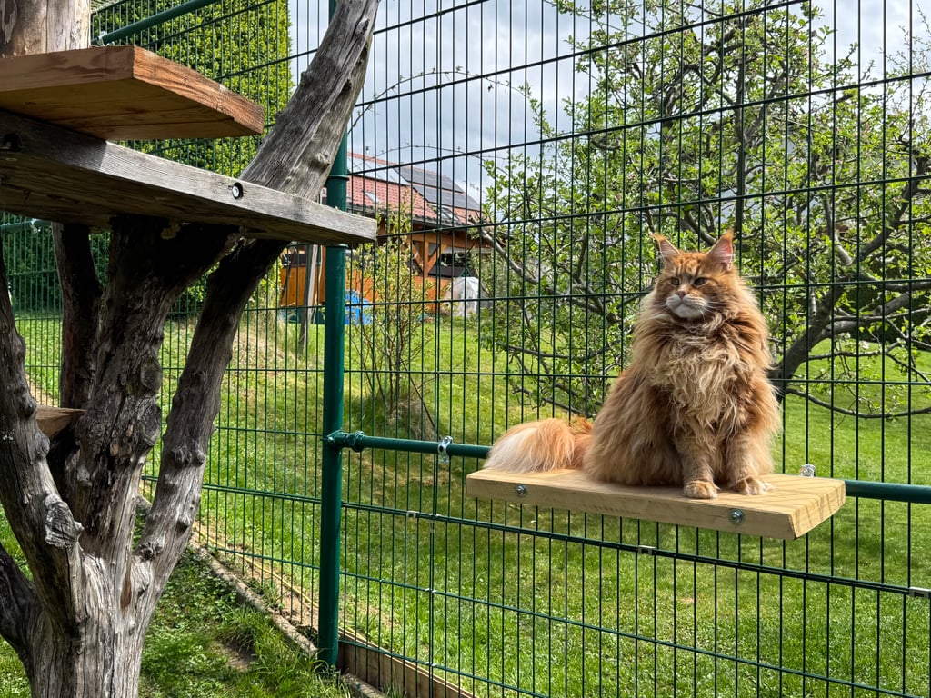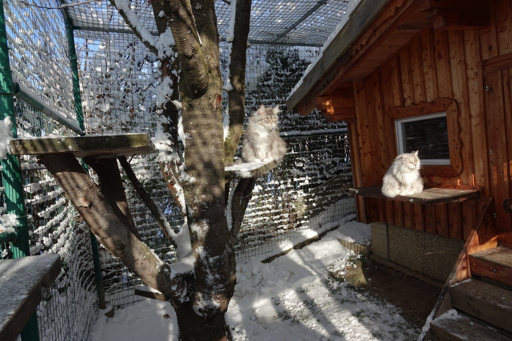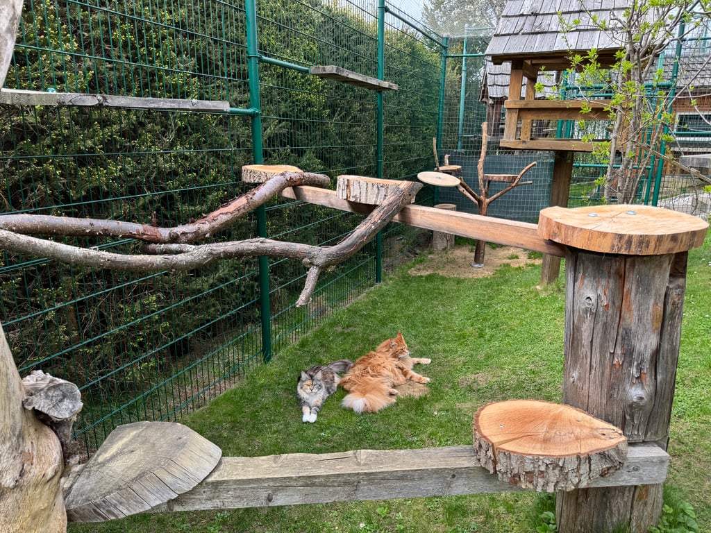 Unseren Katzen stehen zwei großzügige Freigehege zur Verfügung , wo sie nach Lust und Laune klettern, spielen, toben, frische Luft und Sonne tanken können.