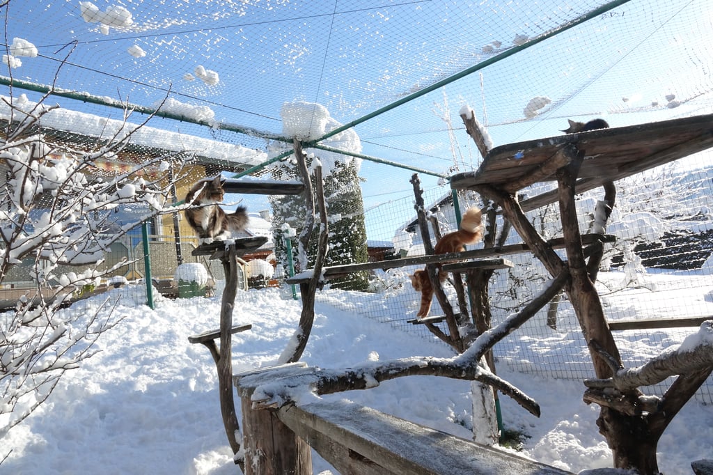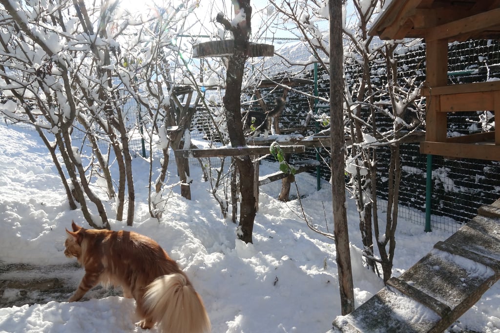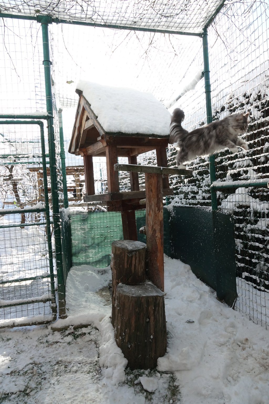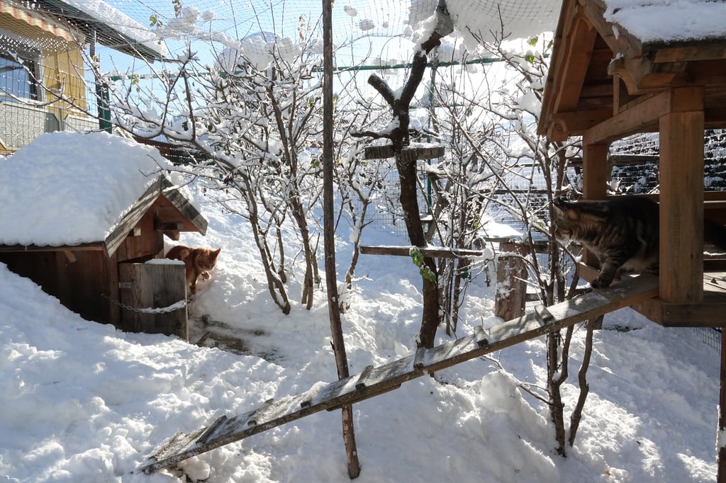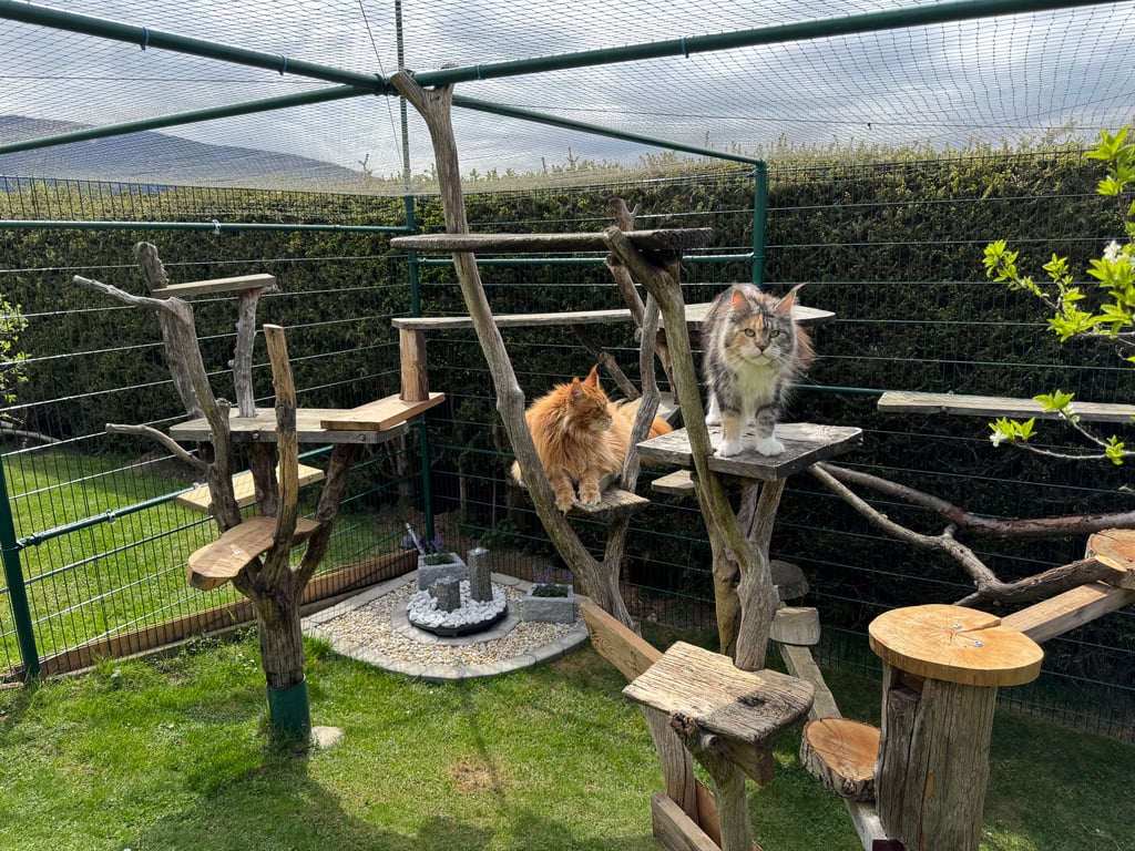 Unseren Katzen stehen zwei großzügige Freigehege zur Verfügung , wo sie nach Lust und Laune klettern, spielen, toben, frische Luft und Sonne tanken können.