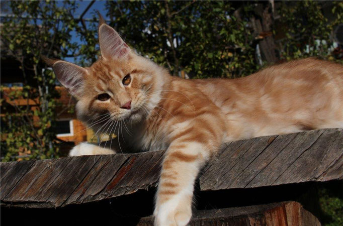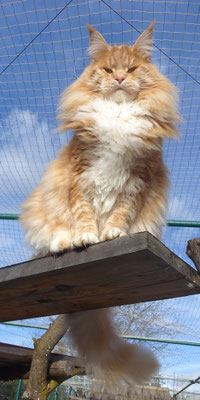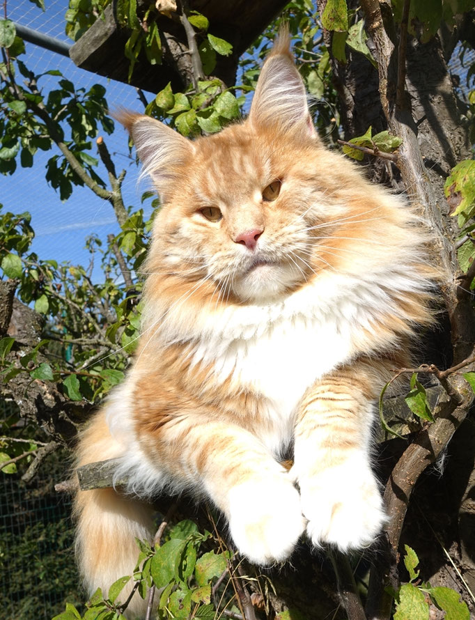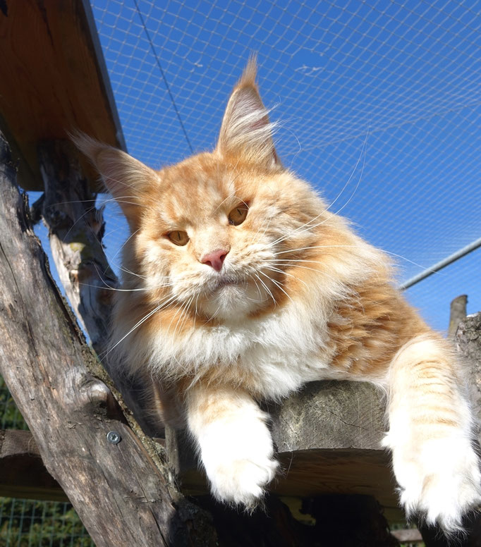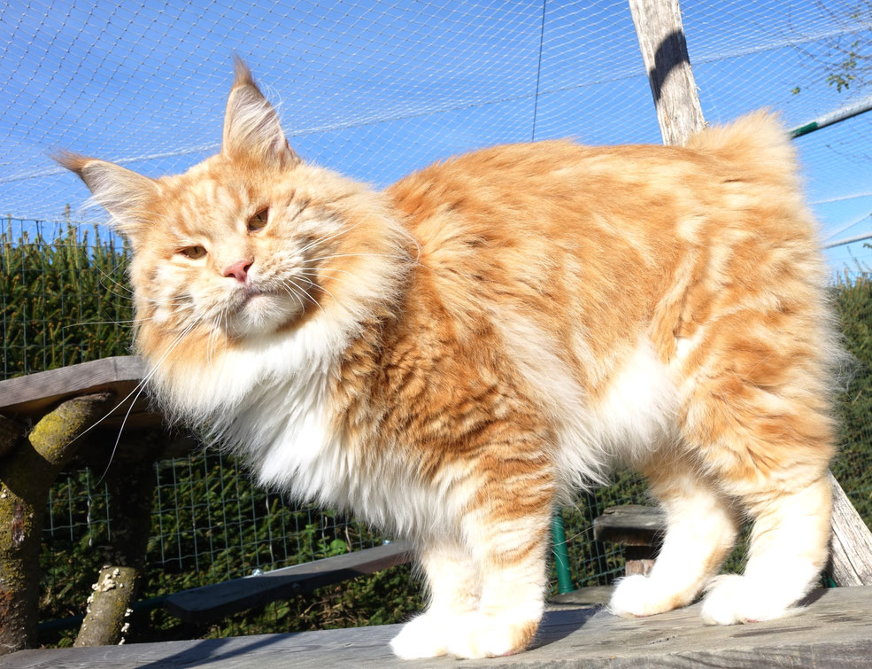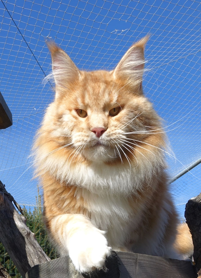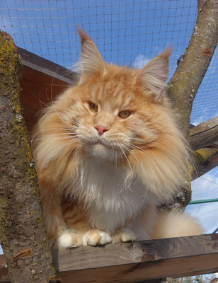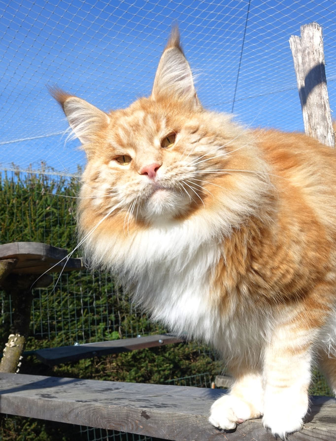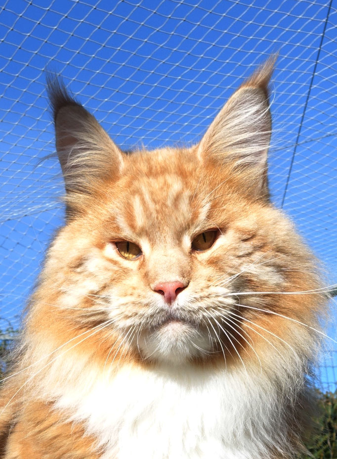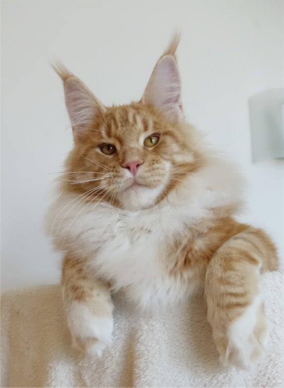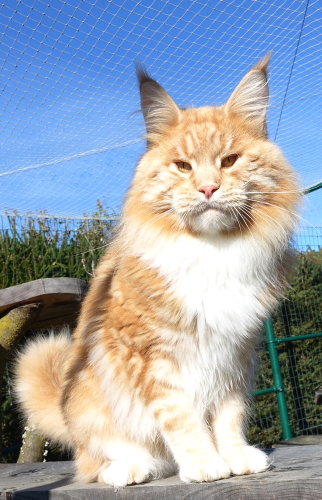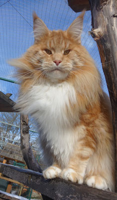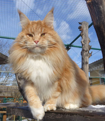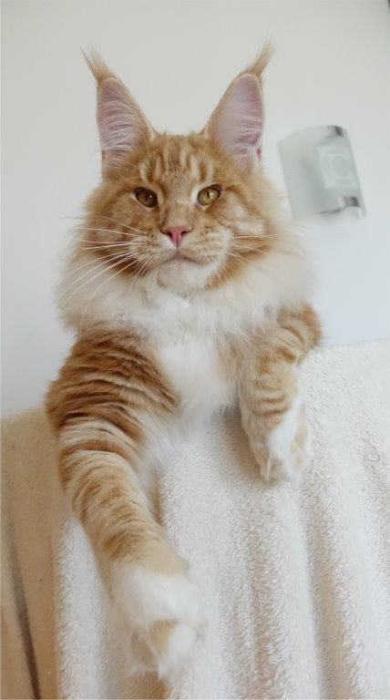 Von  uns wird er „Ginger“ gerufen. Er ist ein kräftiger, sehr großer und langer Kater. Hat große sehr gut platzierte Ohren, ein schönes Profil und eine beeindruckende kantige